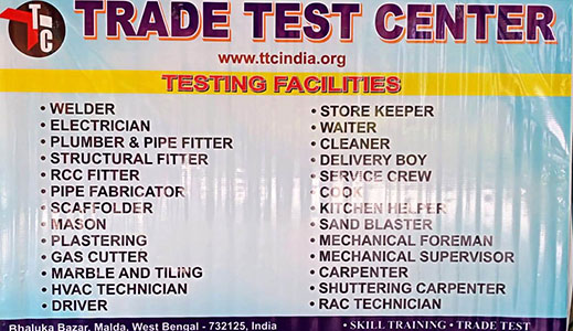 National Industrial Corporation has established a Trade Test Center (TTC) on 26th-April-2022 in the campus of AIT-Bhaluka, Malda, West Bengal, India.